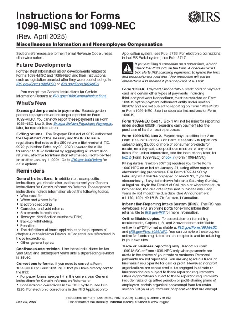 All those who must file form 1099-MISC can have a look at this file. All the instructions have been carefully prepared by IRS officials and updated according to the changes for 2016 tax year. It contains a section-by-section guide, mailing addresses, online resources for submitting and due dates.